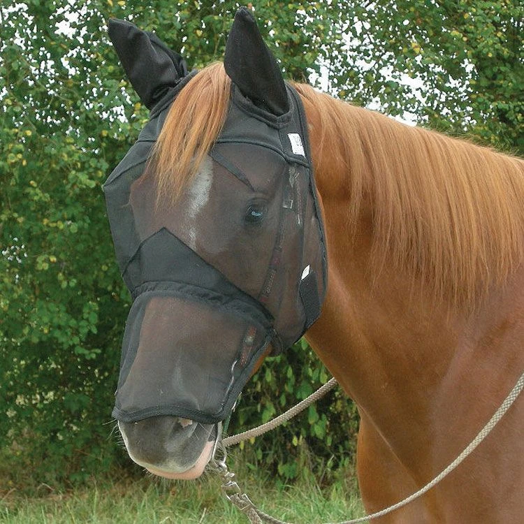 Cashel Quiet Ride Long Nose eliminate head tossing and stress caused by bothersome insects. Designed specifically for use while riding, the Quiet Ride mask features a thinner mesh fabric which is much easier to see through than traditional masks and more flexibly for use over any style bridle.