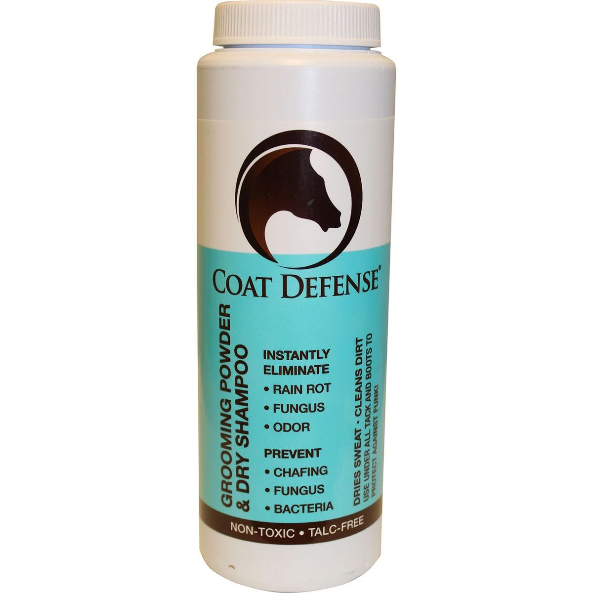 COAT DEFENSE daily PREVENTATIVE POWDER is a natural, safe and effective solution for preventing and treating equine skin issues such as rain rot, itch and odor. It is revolutionary because it prevents chafing, fungus and pathogenic microbes from taking up residence on your horse. It’s a game changer because it soothes and calms allergies, hives and sweet itch without harsh medications. It is effective for drying sweat and moisture quickly, saving you time and preventing your horse from freezing when temperatures drop. In addition to alleviating skin problems, it can be used between baths as a dry shampoo. Features of this revolutionary product include: