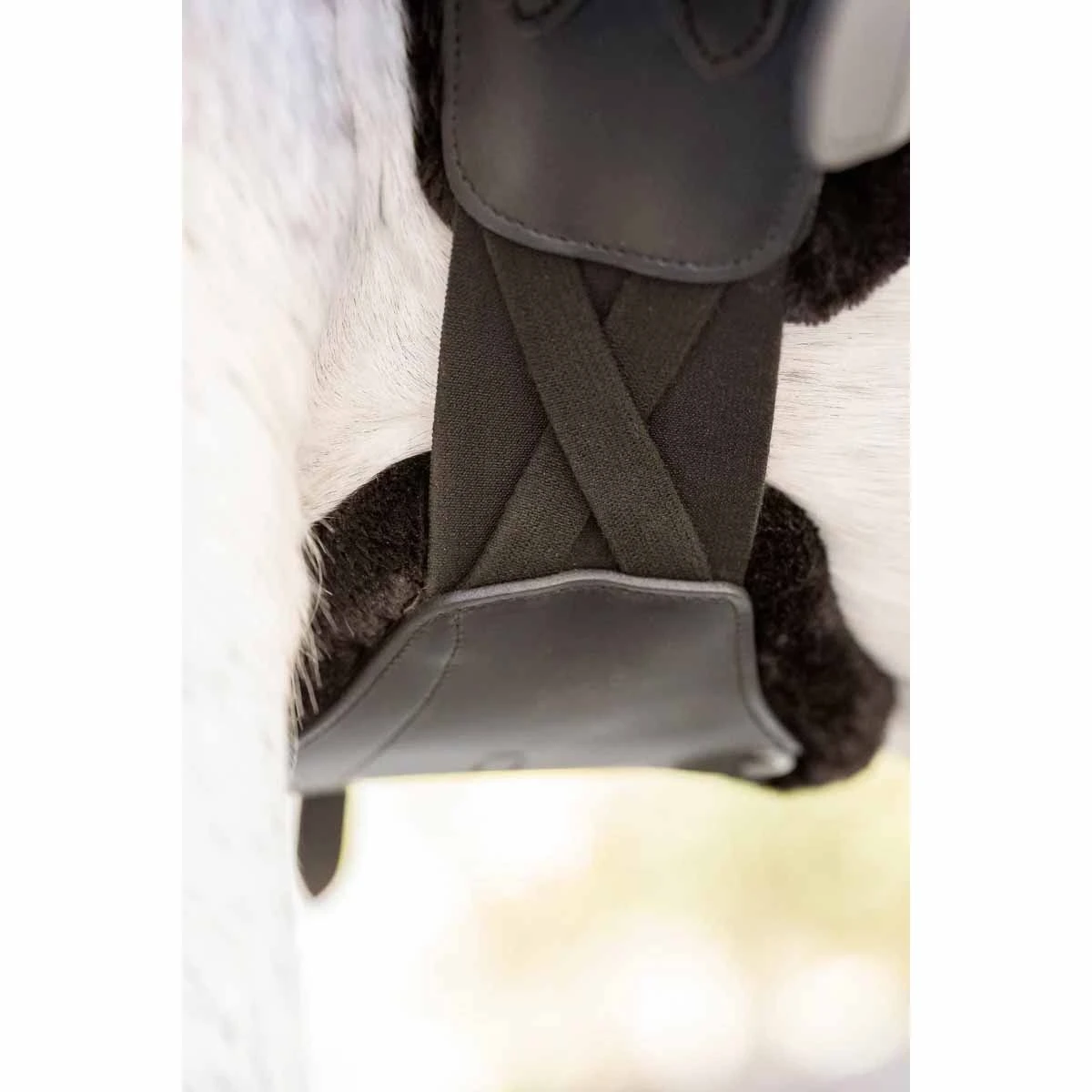 Correct Connect Pressure Relief Comfort Girth is a favorite among saddle fitters! Designed with the horse in mind this girth features strategic placement of wide elastic bands for ultimate equine comfort. Thick, removable and washable, faux sheepskin pads at the sternum and buckle areas relieve pressure points and hold the elastic away from sensitive areas along the rib cage. This girth is a must for girthy and sensitive horses. For additional customization removable leather pads, sold separately, can be used to replace, or in combination with, the sheepskin pads.