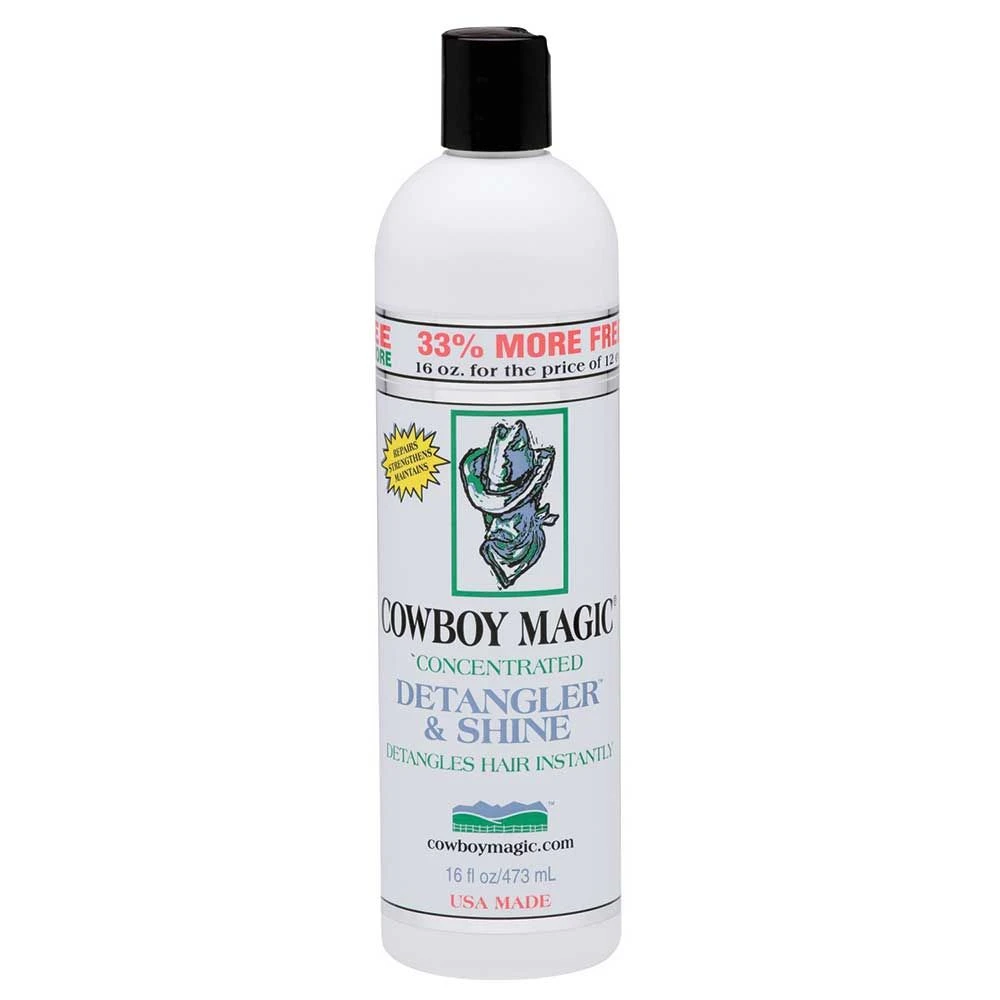 COWBOY MAGIC Detangler and Shine will neutralize static hair electricity instantly. Knots and dreadlocks fall out tangle free right away, no matter how difficult. The silk protein in COWBOY MAGIC Detangler and Shine results in a high shine after brushing. Other features of Cowboy Magic Detangler: Cconcentrated: Pure conditioning, contains no water or alcohol, does not dry hair Works instantly: Detangles as you rub it in and keeps on working, resulting in less grooming time and less product used, saving time and money. Deep conditioner: Penetrates below the surface and restores moisture while strengthening hair, resulting in a natural shine with a soft texture. Long lasting: Repels dirt, dust, and sand, resulting in a shine that lasts longer. Not oily. Neutralizes static electricity: Instantly detangles hair that is difficult to brush and comb. Minimizes hair loss due to pulling and breakage. Requires small amount: A small amount (about the size of a nickel) massaged into wet or dry hair will instantly detangle and deep condition. Contains a UV protectant: Helps protect hair against ultra violet sunlight. Results are less fade, more brightness. Works on people, too: COWBOY MAGIC Detangler & Shine works on human hair.
