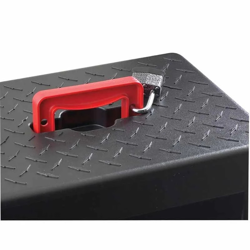 Non-skid stool surface on top to prevent slipping. Handle stays flush on the surface when in “down” position.