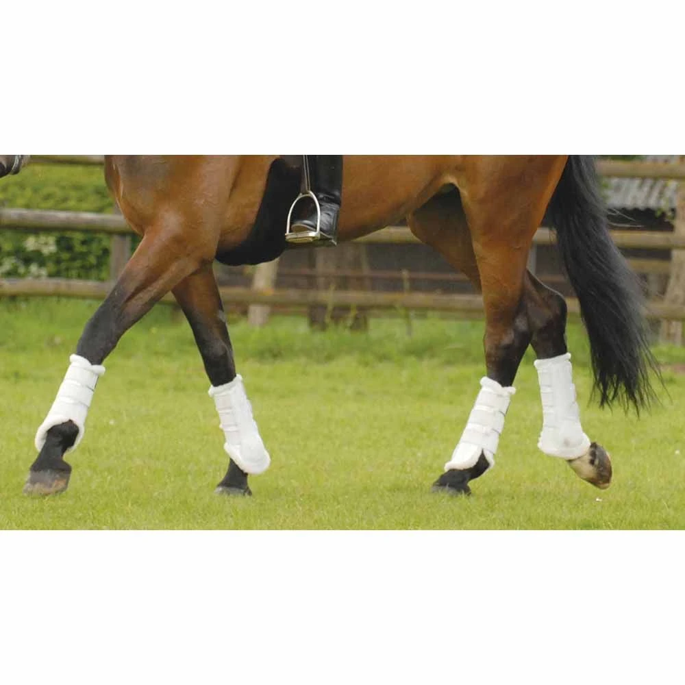 Their unmistakable design allows complete freedom of the fetlocks – dressage does not require any protection for the outside of the joint, but the hard shell is essential on the inside for protection.