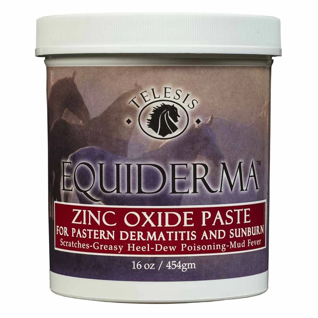 Equiderma Zinc Oxide Paste, sister product to Equiderma Skin Lotion, contains the same active ingredients in a zinc oxide paste form. It’s a powerful and potent treatment in the fight against pastern dermatitis, also known as scratches, greasy heel, dew poisoning, or mud fever. Its antibacterial, anti-fungal and anti-dermatophyte properties help you overcome the heartbreak and frustration of scratches. It creates a water resistant barrier while providing 100% U/V ray protection. An important factor when dealing with scratches on white legs, it stays in place and creates a healthy environment for healing to take place. Also, it is great for sunburn protection for fair skinned horses. Key features of this amazing product include:
