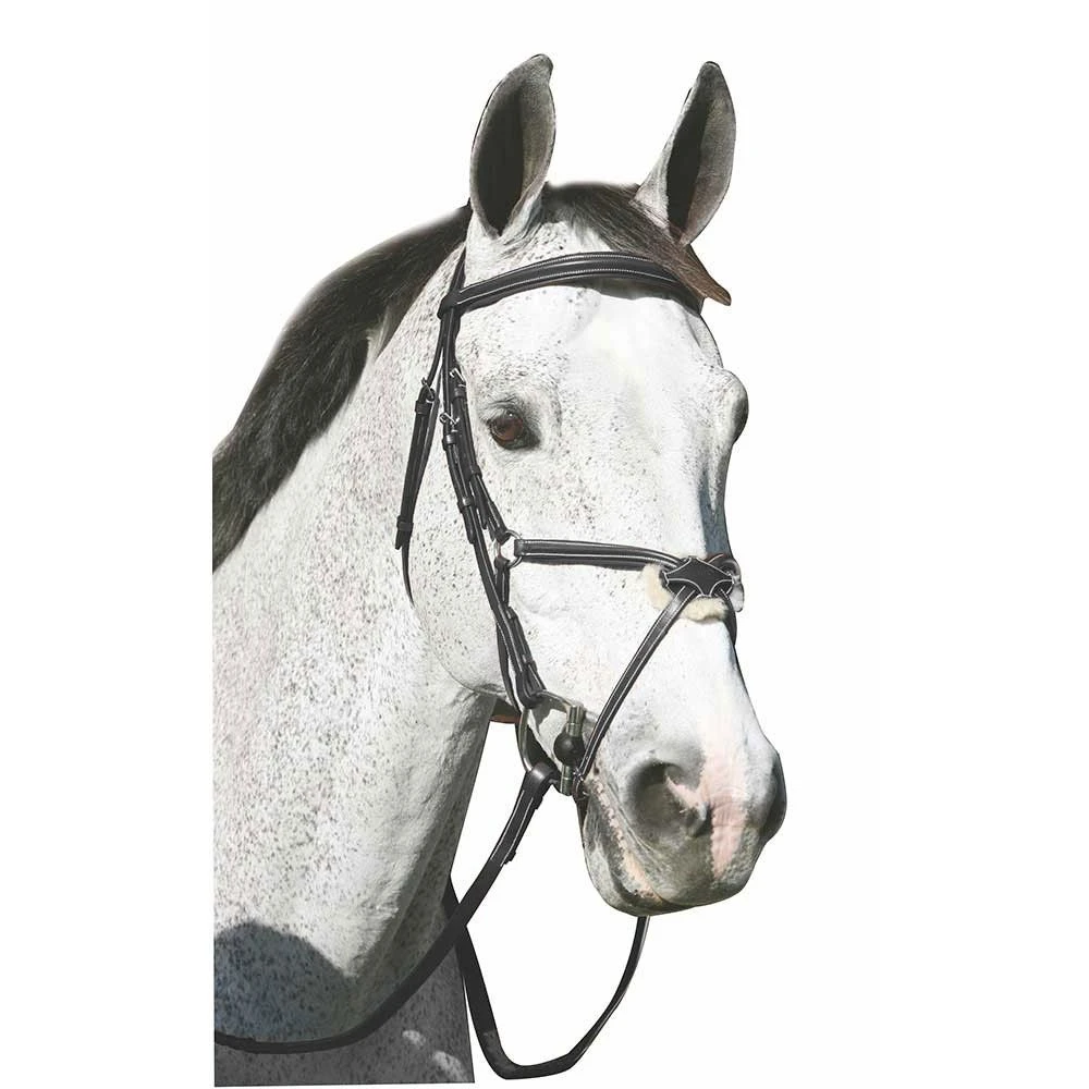 The HDR Pro Stress Free Figure 8 Raised and Padded Bridle with matching reins is a professional figure 8 jumper bridle with special fit and padding to keep your horse comfortable and focused on his work. Integrated crown design combines crown piece and nose band hanger into a single unit Padded, contoured headstall for comfort and style Fleece backed nose piece Attractive contrast colored stitching