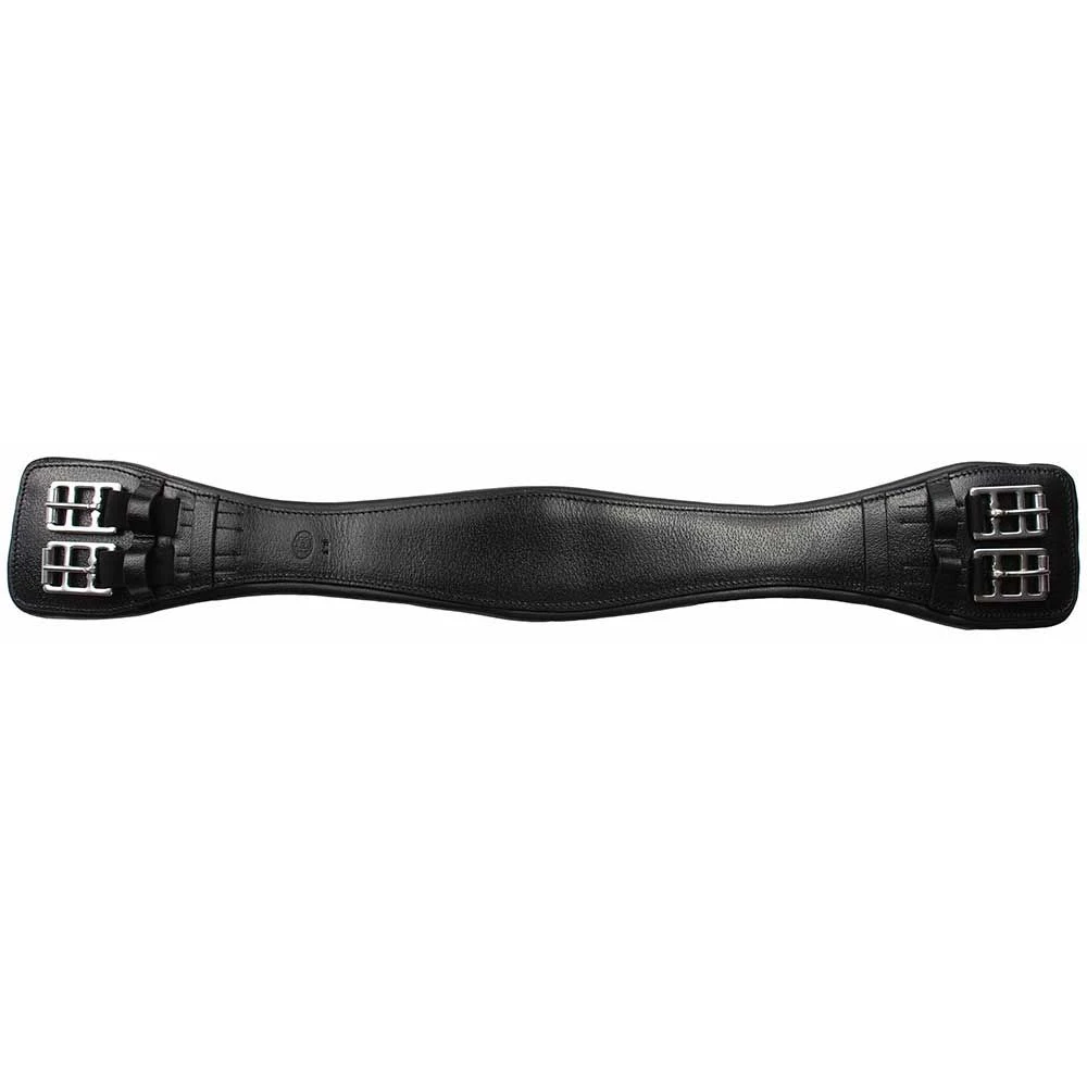 The HDR Dressage Girth is beautifully crafted in French leather with a contoured design for strength, durability and comfort. Stainless steel roller buckles and elastic insert for tightening.