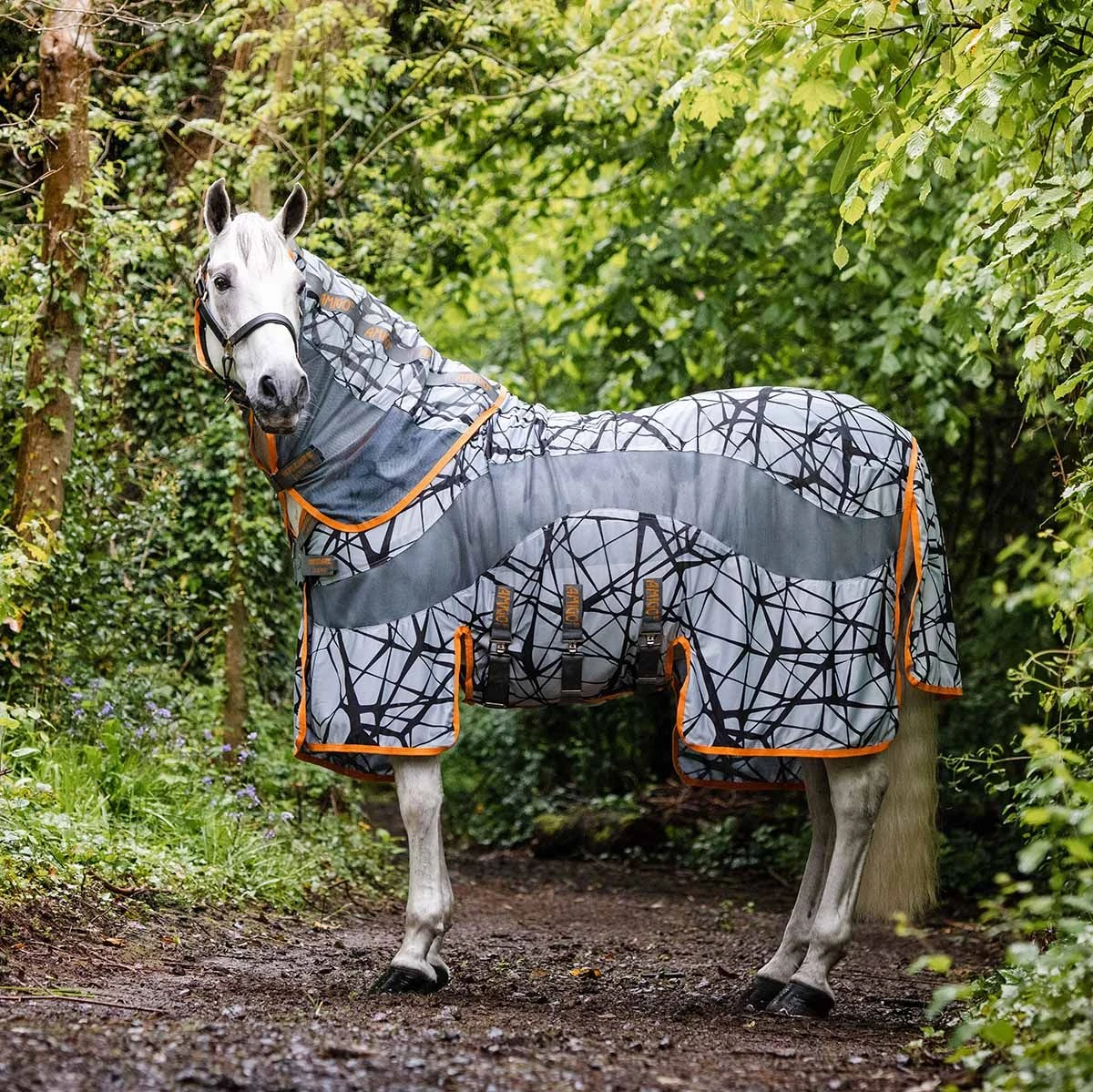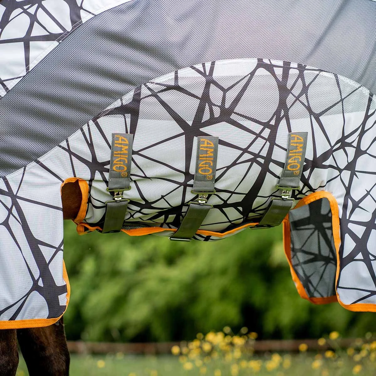 The Horseware Amigo CamoFly Sheet offers a monochromatic pattern that is designed to deter flies from landing on your horse’s body. The layered black lines on a grey background act to create an optical illusion for flies. The unique pattern breaks up the shape of the horse so that insects struggle to identify it as a target. Features of the Horseware Amigo CamoFly Sheet include;