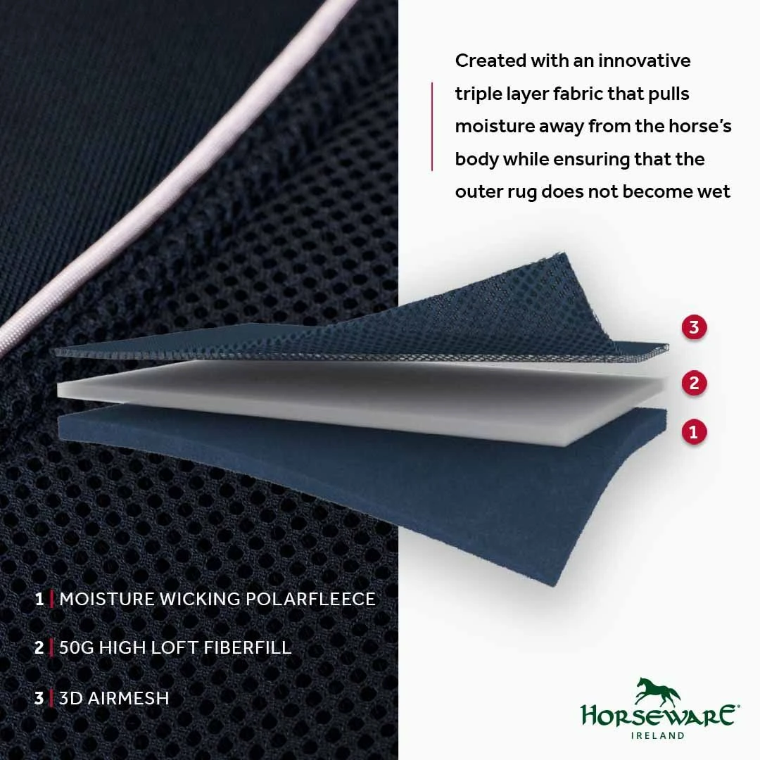 The Horseware Dry Liner eliminates blanketing wait time whilst maximizing your horse’s comfort after exercise. The Horseware Dry Liner allows you to use your Horseware Ireland turnout after exercise. With the Horseware Dry Liner, you can blanket right after exercise with no wait time for extra drying.