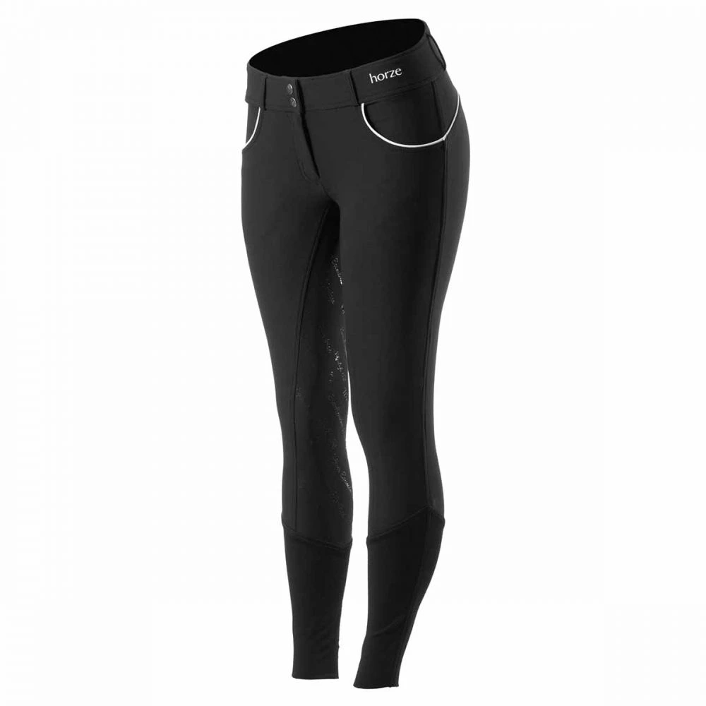 The Horze Nordic Womens Performance Silicone Full Seat are a lightweight designed for maximum performance. The silicone grip is uniquely designed into phrases such as “Speed, Strength, Success” and “Ride and Shine” to not only keep you secure in the saddle, but also to inspire your ride. The wide waistband and medium rise waist give you extra support. So comfortable to wear you will forget you have them long after you have left the barn. Complete with distinctive piping and the distinctive Horze logo, you will love the fit, feel and look of these breeches from the moment you get them!