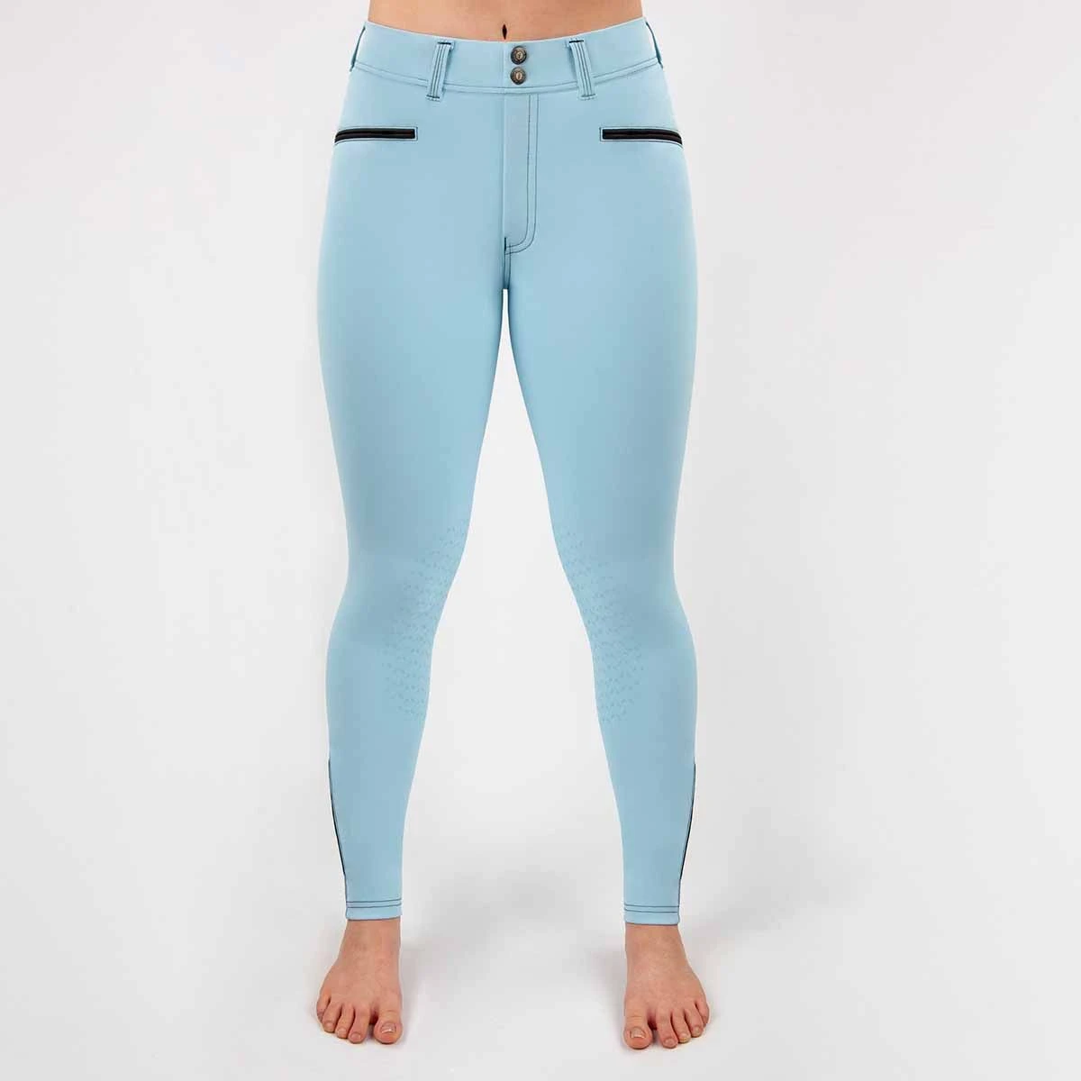 Modern colored contrast stitching and horsehead shaped tread silicon knee patches. These knee patches provide excellent grip with a next-to-nothing feel for the perfect all around breech.