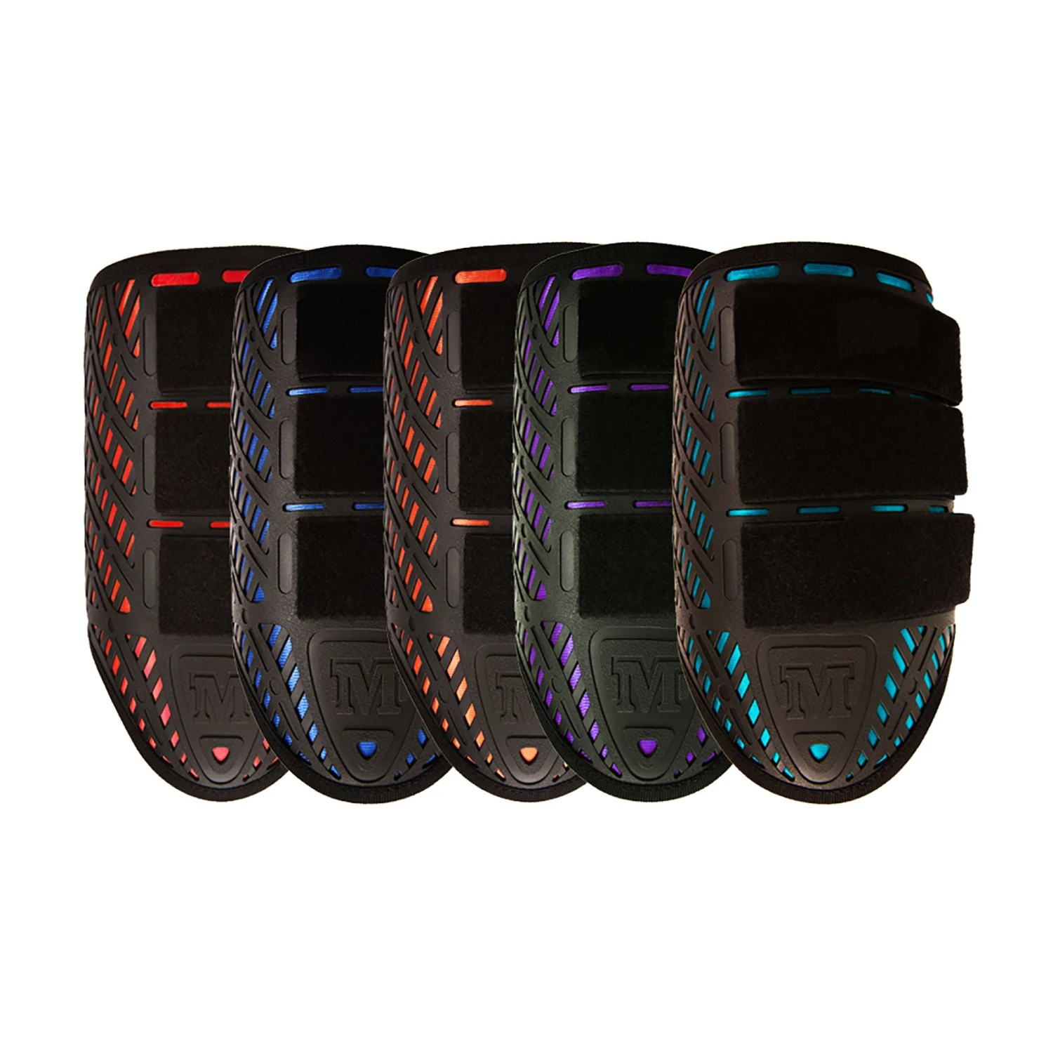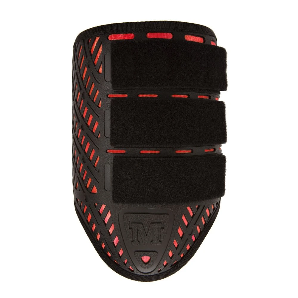 - Strike plates are designed to flex in four directions to not inhibit movement when galloping and turning, but forms a hard wall on impact