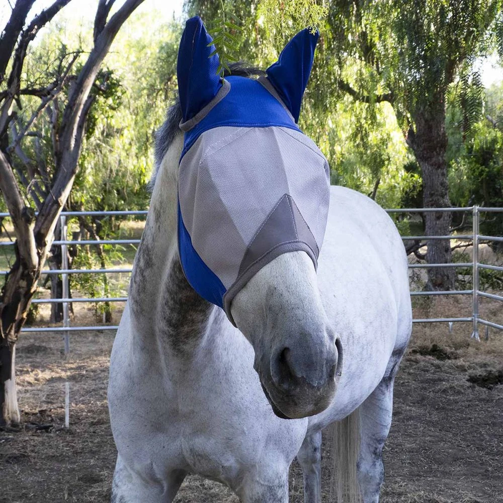 Full coverage ears, adjustable straps and finished with a soft binding that makes this mask super comfortable for your horse.