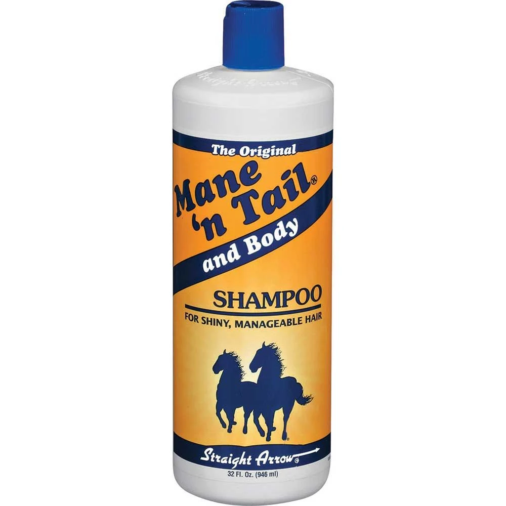 Mane ‘N Tail and Body Shampoo by Straight Arrow is great for people too. Super concentrated and formulated to be gentle and non irritating. This micro enriched protein formula cleanses hair thoroughly, yet will not strip natural oils and is ideal for all hair and coat types. A rich, fragrant lather gently cleanses, provides body, shine and manageability for healthy looking hair every time. Fragranced with a perfume that acts as a natural fly repellent. For best results, use in conjunction with Mane ‘N Tail conditioner.