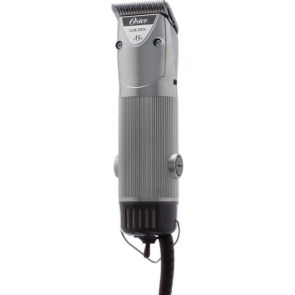 The Oster Golden A5 Clipper is a heavy duty single speed animal clipper. This clipper features: Cooler running motor for cooler handling New Oster Cryogen-X blades are on average 30 degrees cooler. Detachable blade system makes for quick and easy blade changes. Oster A5 single speed clipper with size 10 Cryogen-X blade Blade guard Blade oil Cleaning brush Instructions.