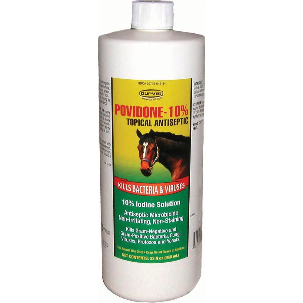 Priority Care 1 Povidone Iodine Solution is a Non irritating, non staining anitseptic microbicide useful in treatment of minor cuts, bruises and abrasions for horses. Kills gram negative and gram positive bacteria, fungi, viruses, protozoa and yeasts Apply full strength as often as needed. May be covered with bandage if necessary. Ingredients: povidone iodine solution is equivalent to 1.0% titratable iodine. 32 fluid oz.