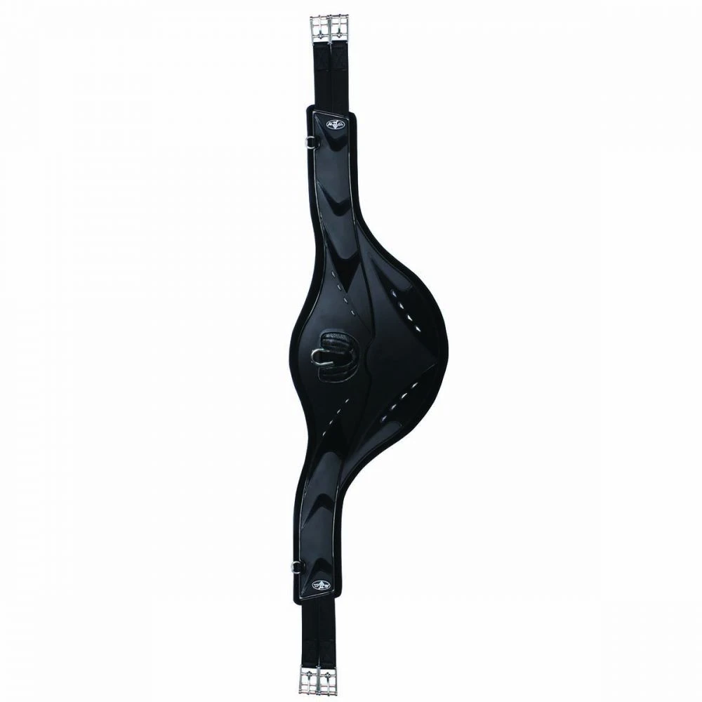 The Professional’s Choice Contoured Belly Guard Jump Girth features a wide center area in TPU material to protect the belly while spreading pressure over a larger area. The VenTech mesh liner prevents slipping while absorbing moisture and allowing airflow to keep your horse cool and comfortable. The stainless steel center carabiner clip and two d-rings allow for easy attachment of breastplates, martingales and training aids. Lightweight and durable, this is a great choice for use cross country.