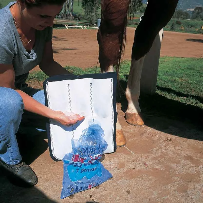 The Professional’s Choice 9 Pocket Ice Boot is 23 inches tall allowing it to be used for icing from above the knee or hock all the way to the pastern. With 9 individual pockets and 6 Velcro Fasteners for a custom fit, this boot should be part of every horse owner’s first aid kit. Features of the 9-pocket ice boot include: