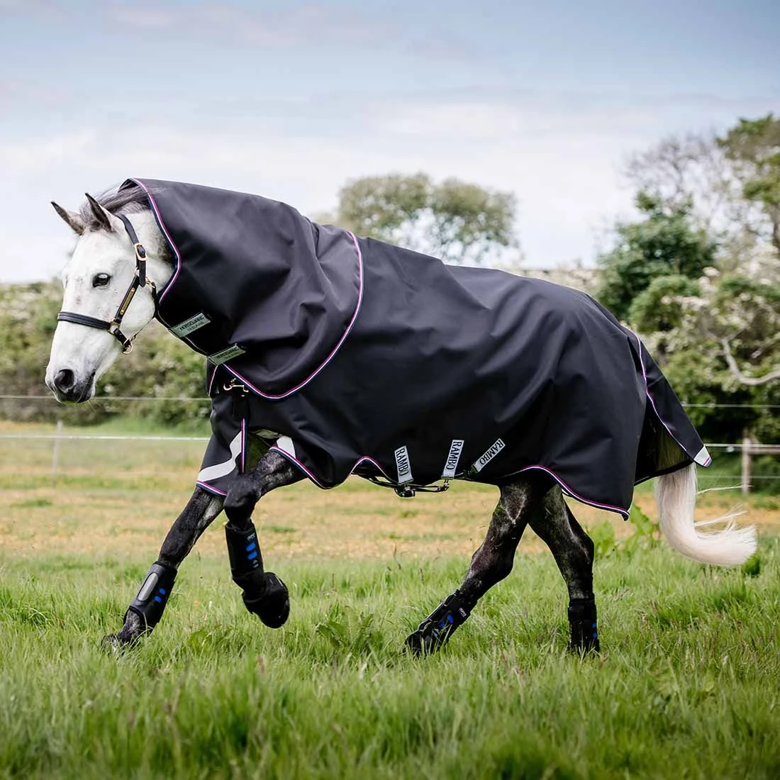 The Rambo Supreme Light Weight Turnout has been updated for 2021 to a 1680D ballistic nylon outer shell (formally was 1000D). The new fabric is 120% stronger than the original. The Rambo Supreme is still the ultimate versatile turnout sheet for extreme weather. The Supreme is fully waterproof with a removable neck cover included so you can fully wrap your horse from head to tail to keep him warm and dry.