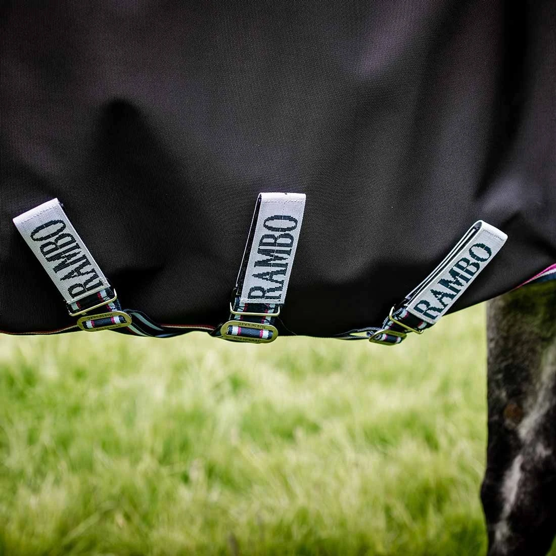 The Rambo Supreme Vari-Layer Medium Weight Turnout has been updated for 2021 to have a 1680D ballistic nylon shell which is 120% stronger than the original 1000D fabric. Vari-layer technology has been designed to offer more warmth with less weight than a traditional medium weight turnout blanket.