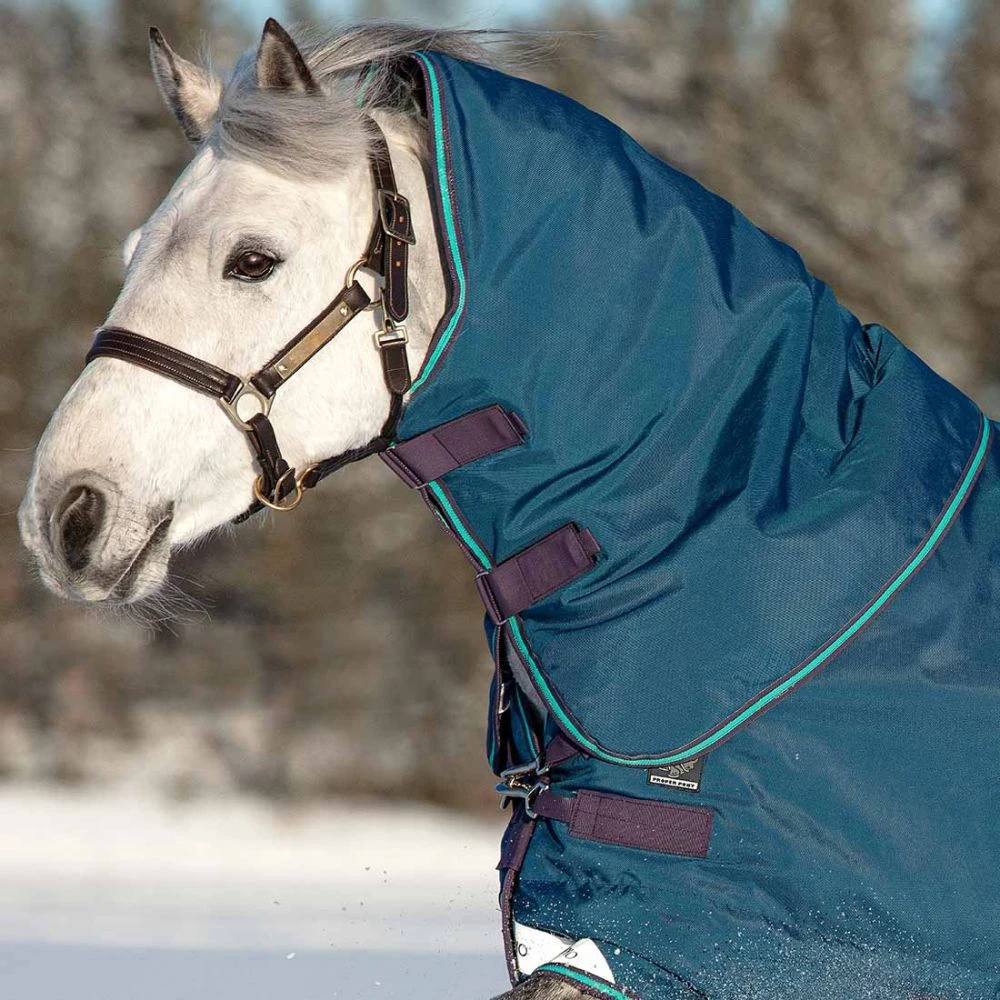 The Rhino Original 1000 Denier Neck cover with 150g of polyfill insulation attaches to your Rhino Original Turnout to provide greater protection for your horse in cold or wet weather. Rhino Turnouts and neck rugs have been designed with a unique barrier technology where AquaTrans coating, instead of being applied directly to the outer fabric, is applied to a super smooth barrier fabric which is layered.