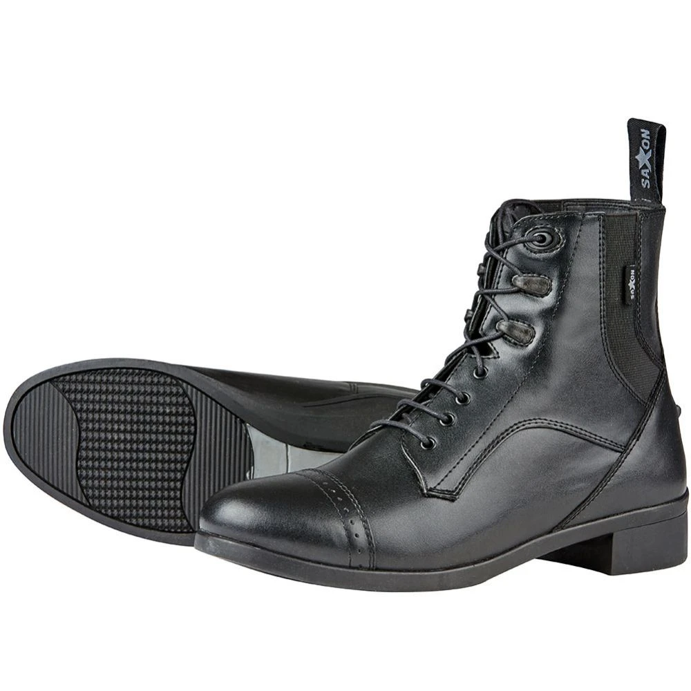 The Saxon Syntovia Lace up Ladies’ Paddock Boot is a traditional yet stylish paddock boot made in a soft synthetic leather for easy care with a true leather look. Designed for a comfortable fit with speed laces for customized ankle support while riding, the Syntovia is a budget friendly choice for riders of all levels.