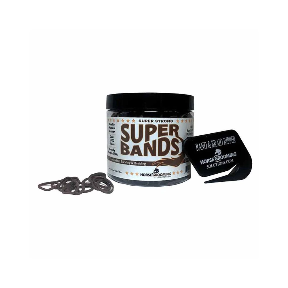 Super Bands are made of quality, natural rubber that is strong and tough enough for the harshest show sprays. .25 pound jar with 1,300-1,400 bands per jar.