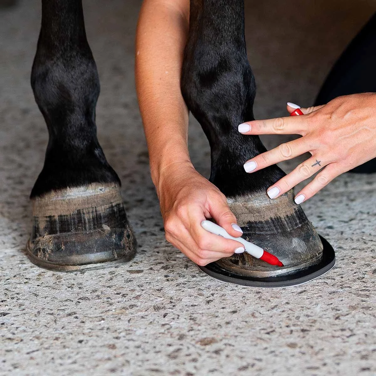 Place the slick side of the hoof pad against the other pad and keep the matte side against the horse’s hoof. For optimal results, replace pads at regular shoeing intervals.