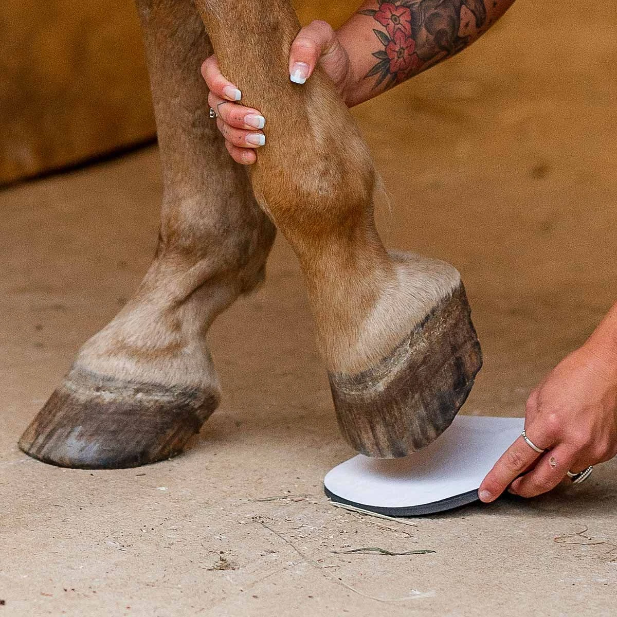 - Add pads to a hoof boot for abscesses or wrap onto the hoof with duct tape.