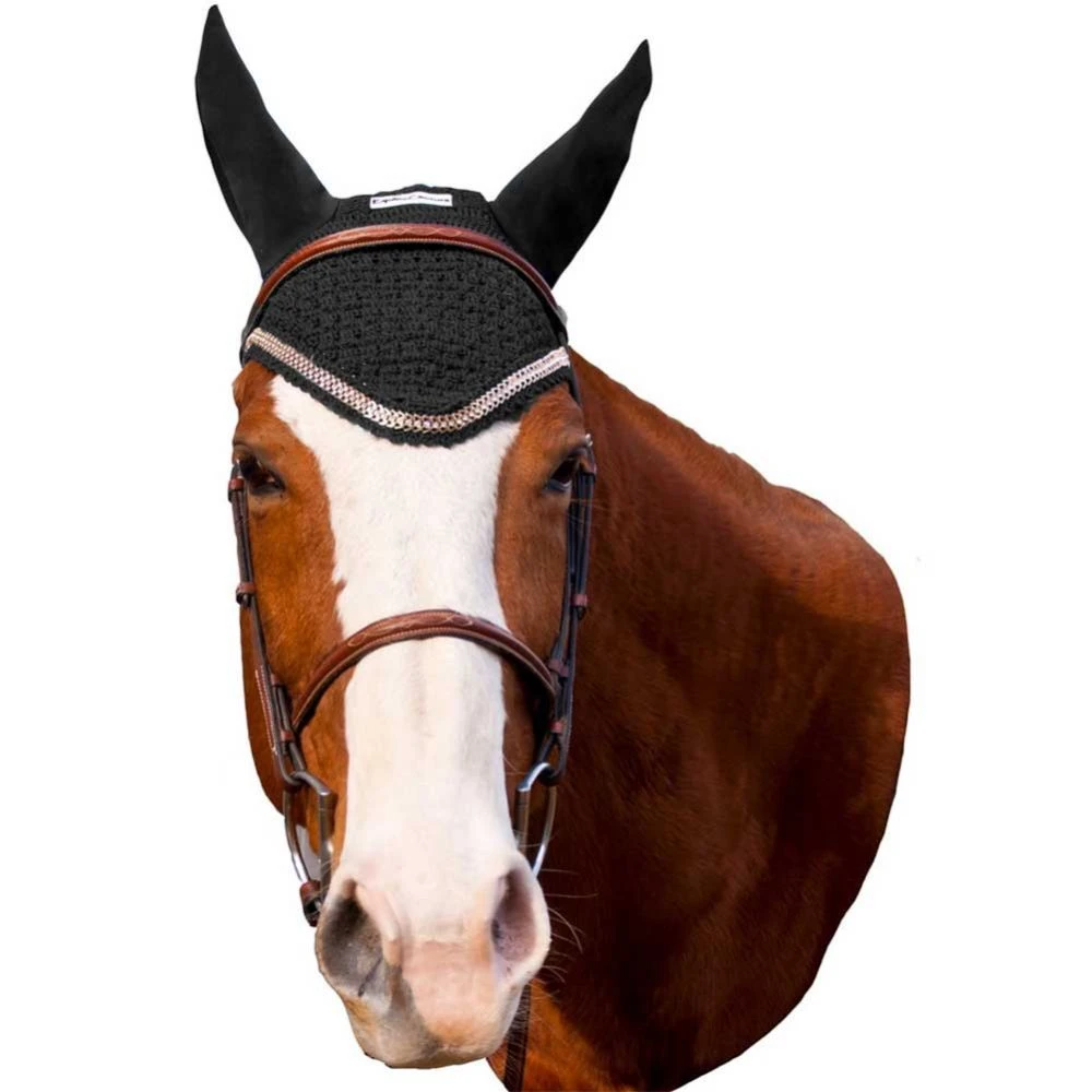 The Tuff Rider Fly Bonnet with Lurex Chain Detail is a comfortable yet stylish crochet ear bonnet designed to keep flies out of your horses ears while highlighting his pretty face. Soft crochet bonnet has adequately sized ears with a bit of stretch for a comfortable fit. Lurex thread on the outer edge of the bonnet gives the look of a chain without the weight. Perfect for schooling or showing to add a touch of sparkle to your horse’s ensemble.