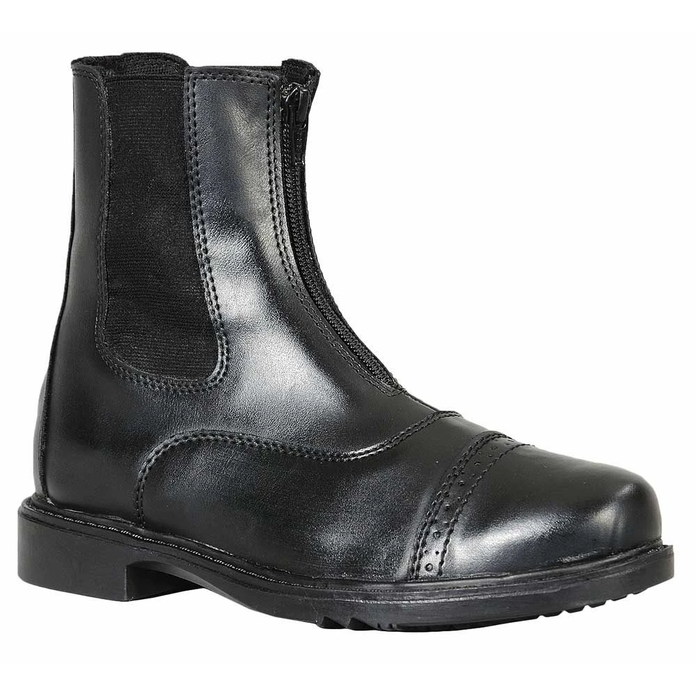 The TuffRider Starter Zip Paddock Boot is a durable, all weather, synthetic leather paddock boot priced for the beginner on a budget but with a look suitable for a professional. Super soft faux leather creates a very comfortable boot that lets you ride or work around the stable in any weather Stylish punched toe cap Elasticized gusset for comfort Zippered front for quick on and off Synthetic faux leather