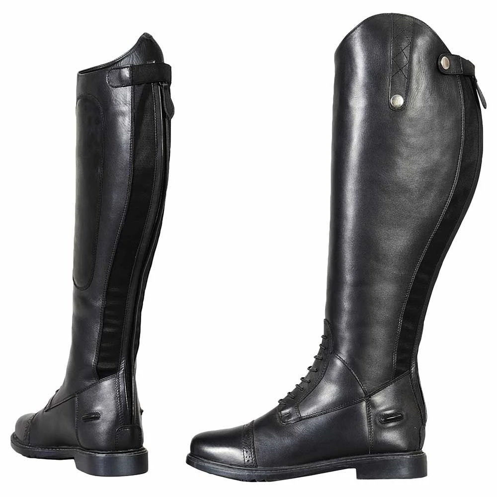 Tuff Rider Plus Rider Field Boots are made in soft leather with an extra wide calf to fit those who have previously been unable to fit a tall boot. Not only is the calf extra wide, it also has two elastic gussets and a back zipper for easy on/off.