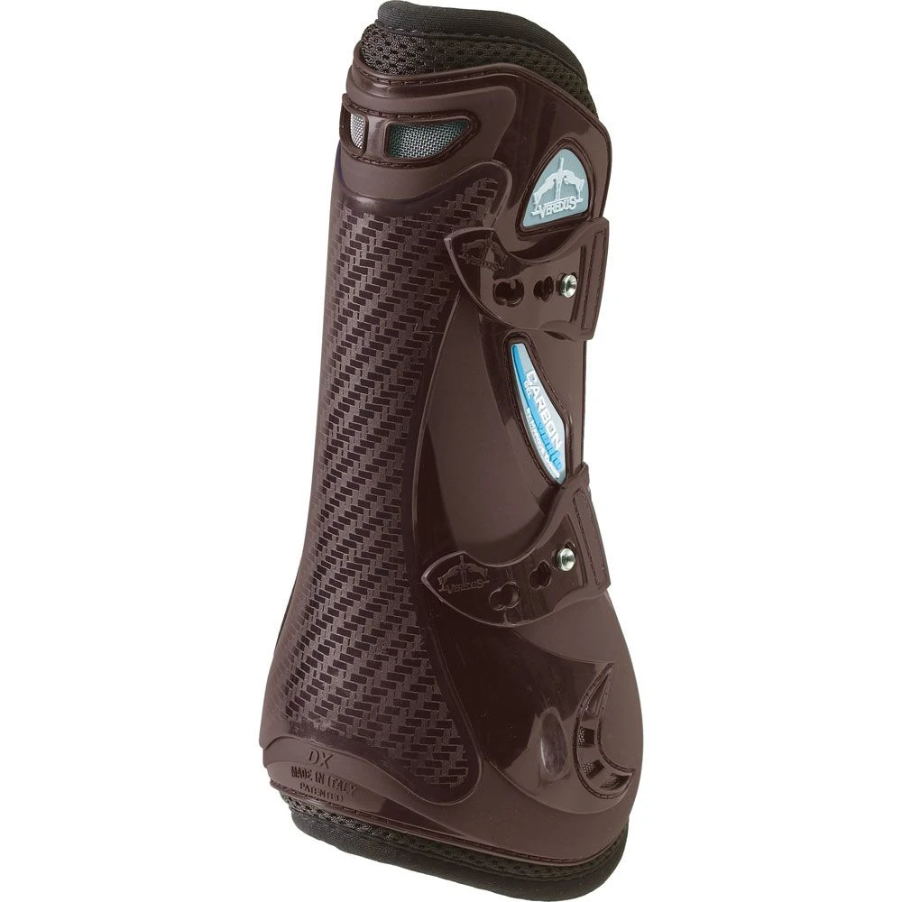 Veredus Carbon Gel Vento Open Front Boots are the first open front boot to guarantee double ventilation. More dangerous than any impact is the effect of heat buildup on your horse’s legs. Veredus Vento Boots release heat through their exclusive double ventilation system in which cool air is drawn in through the bottom vents and heat is released through the top vents. Air circulation within the boot is aided with Aerox microperforated neoprene and 3D Mesh Ducted fabric. Inner layer of Aerox microperforated neoprene