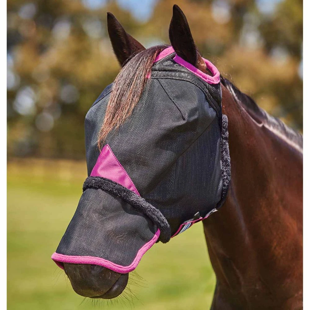 - Extended nose piece helps protect nose from sunburn and annoying house flies that congregate at horse’s nostrils
