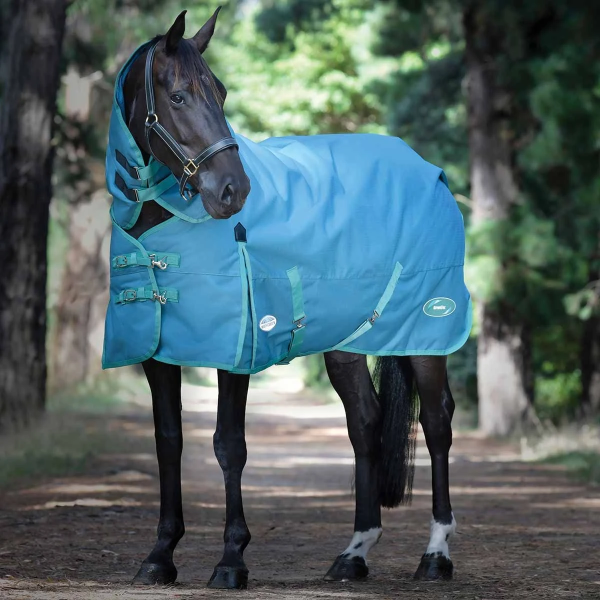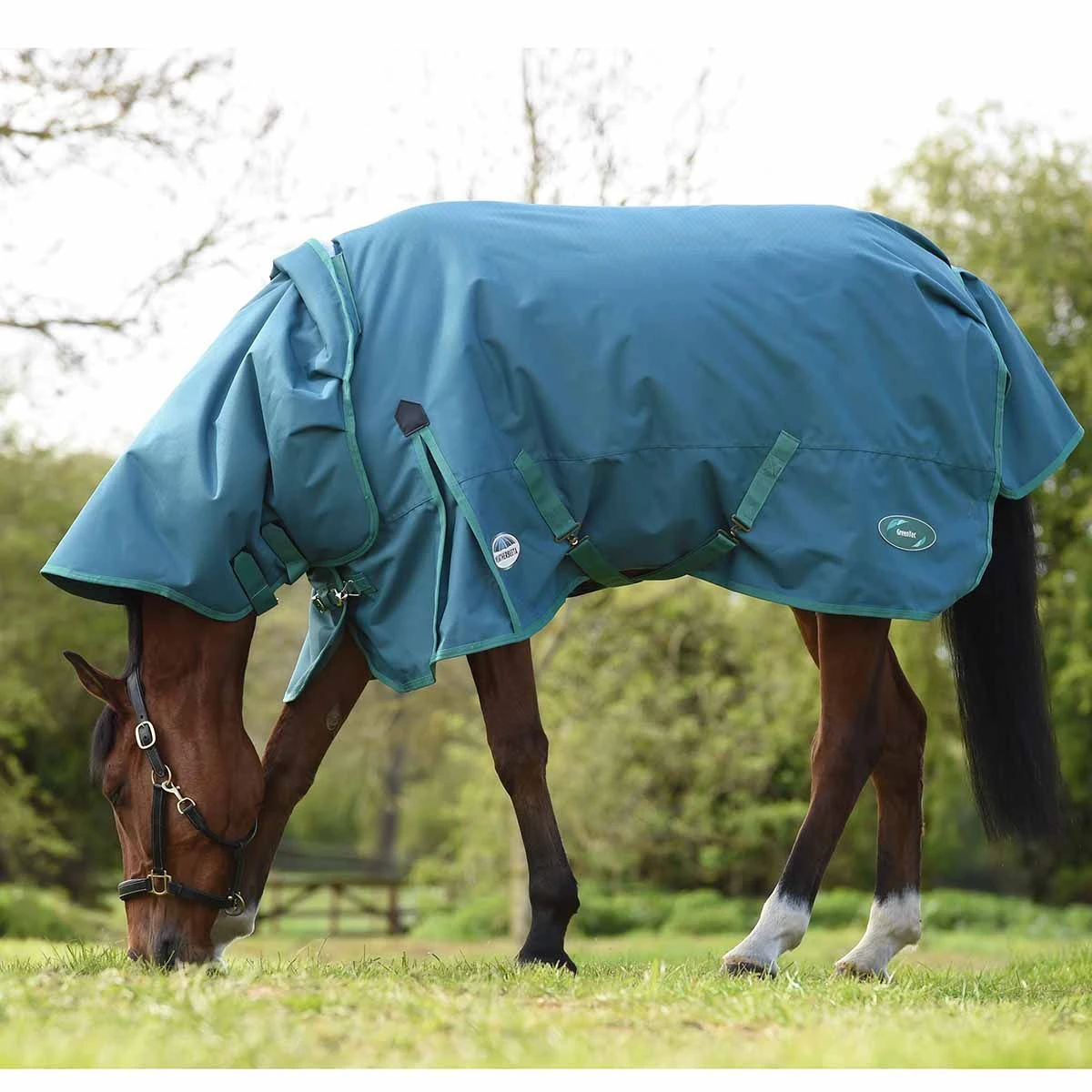 The WeatherBeeta Green-Tec 1200D Detach-A-Neck Heavy Turnout Blanket was been created using recycled plastics for the outer and lining, meaning it is not only a quality turnout rug to keep your horses dry and cozy, but is also helps our environmental impact. Made of a rugged 1200D waterproof and breathable plain weave outer, and filled with 360grams of warm poly fill.